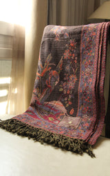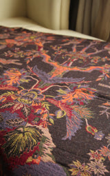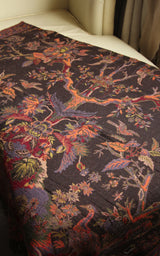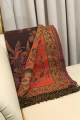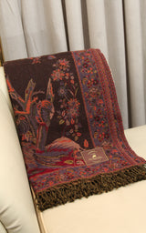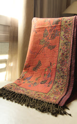 This pure wool blanket is woven with a full Tree of Life in the centre with some birds, peacocks and butterflies on the side. It brings together a warm brown among neutral tones and burnt orange to create a distinct design. Tight yet soft, it's your best option to keep warm within cold climates. It is not the kind of blanket you would see on a daily basis which makes it all the more unique.