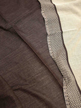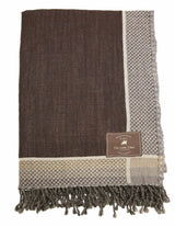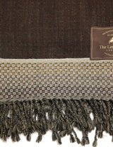 This chocolate brown boiled wool blanket features a rich, earthy tone complemented by subtle geometric border detailing in charcoal and soft grey. Thick yet soft, it brings warmth, texture, and understated elegance to any interior.