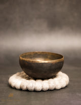 Key Features: Authentic Antique BowlNaturally aged with unique tonal character; E Note for Third Eye ChakraSupports insight, awareness, and perception; Lightweight and CompactIdeal for travel, beginners, or chakra kits; Hand-Hammered CraftsmanshipTraditional Tibetan technique for unique resonance; One of a KindAged texture and tone make it a collectible piece.