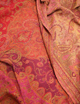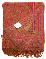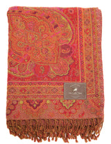 This intricately designed wool blanket was produced by boiling. With captivating colour combinations of red and warm orange, this blanket is one way to add dimension to anything.