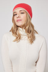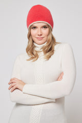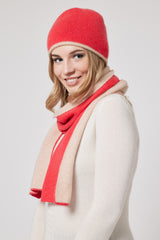 Women’s Mongolian Cashmere Hat & Scarf Set – Soft, Lightweight and Reversible (Red & Cream)
