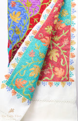 Wrap yourself in luxury and beauty with our stunning white woollen embroidered shawl. Adorned with intricate and colourful floral hand embroidery, this shawl is a timeless piece that will make you feel radiant and memorable.