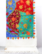 Dense hand embroidery white woollen embroidered Shawl #EM101-9