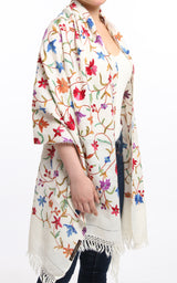 Floral Beauty Embroidered Wool Shawl - creamy-white-full