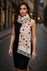 Feel the comfort and warmth of this embroidered shawl threaded with silk which makes it more durable. This fashion staple can be worn as a scarf, shawl, or stole and is suitable as a gift to yourself or someone special.