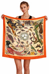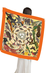 Bird's Nest Square Silk Scarf-Orange
