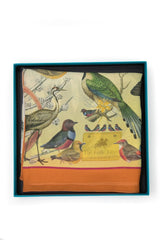 Birds symbolise infinite possibilities, and the different species of these birds on this scarf emanate that beautiful representation of home, the root or the nest. Inspired by 18th-century illustrations with the modern design concept and graphic enhancements, it has brought forward a symbol of unity and one's roots, just as these numerous birds crave belongingness and identity.
