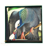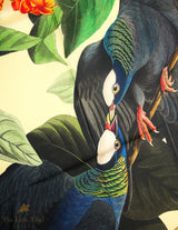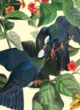 Set within lush foliage and radiant blooms, the composition captures a moment of tenderness that feels both intimate and ceremonial. Inspired by the illustrative world of Audubon and the visual language of 18th-century natural history, the artwork balances precision with romance, inviting the eye to linger on feather, leaf and petal.