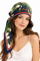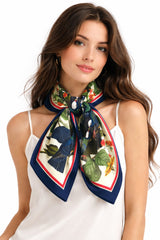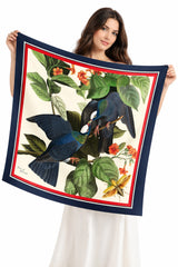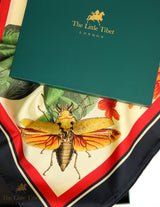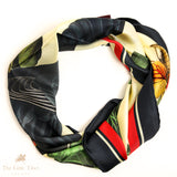 More than ornament, the scarf reads as a symbolic tableau: love held steady over time, nature as witness, and beauty as a form of continuity. Designed as a silk carré to be worn, collected or gifted, it carries the presence of an artwork rather than an accessory.