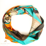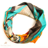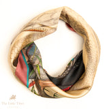 Sea Bird Representation Silk Scarf – 100% Pure Silk Twill (Beige & Turquoise)