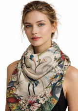 Sea Bird Representation Silk Scarf — a refined silk scarf celebrating love, unity, and harmony, inspired by the timeless beauty of the sea and classical natural-history illustration.