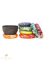 This handmade, ring-shaped cushion is covered in luxurious silk brocade, providing the perfect base for your singing bowl. Ideal for protecting delicate surfaces like glass, it offers stability while enhancing the visual appeal of your bowl. Available in three sizes to suit all bowl dimensions, and in seven vibrant colours representing the chakras, you can match it to the chakra of your bowl for a harmonious touch. Perfect for meditation spaces, sound healing practices, or as a thoughtful gift for spiritual enthusiasts.