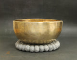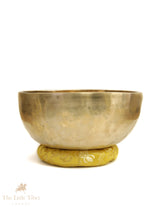 This one-of-a-kind antique Tibetan singing bowl is a rare collectible piece, hand-hammered with a thick rim to produce deep, sustained resonance. Tuned to G Note, it is ideal for Solar Plexus Chakra healing, meditation, and sound therapy.
