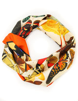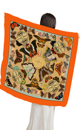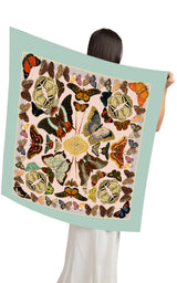 Add a touch of colour, symbolism, and timeless elegance to your wardrobe with this exclusive butterfly silk scarf.