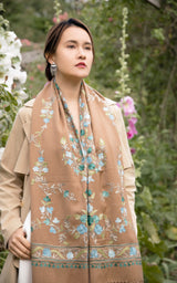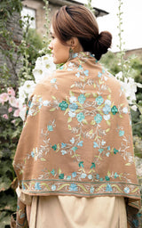 Intricately woven in delicate threads of the finest silk, this beige shawl provides warmth and comfort in elegant style.
