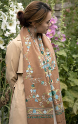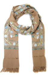 This embroidered shawl features intricate chain stitching floral patterns that make a stylish accessory to any outfit when used as a scarf, stole, or wrap that feels luxuriously soft on the skin.