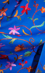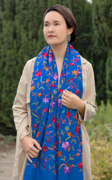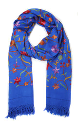 This embroidered shawl features intricate chain stitching floral patterns that make a stylish accessory to any outfit when used as a scarf, stole, or wrap that feels luxuriously soft on the skin.