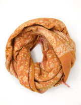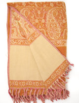The only vibrant cosy scarf you will ever need. This yak-wool blended shawl with soft orange and cream colours decorated with a paisley design compliments each reverse side of this shawl. Bright and vivid. The comfortable chunky knit for all of your needs such as for yoga, an essential piece, on your travels, or a drape over the sofa or even your shoulder.