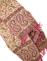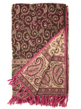 The only vibrant cosy scarf you will ever need. This shawl with dark red and cream colours decorated with a paisley design compliments each reverse side of this shawl. A stylish and comfortable chunky knit for all of your needs such as for yoga, an essential piece, on your travels, or a drape over the sofa or even your shoulder.