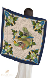 Bring the vibrancy of the Himalayas into your wardrobe with the Long-tailed Broadbill Silk Scarf – a timeless accessory inspired by one of nature’s rarest and most enchanting birds.