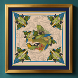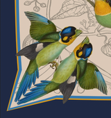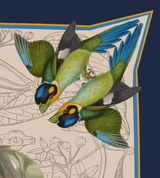 Celebrate the rare beauty of the Long-tailed Broadbill with this exclusive silk scarf design. Known for its striking plumage and playful character, the long-tailed broadbill is found only in the foothills of the Himalayas and Tibet, making it a truly unique source of inspiration.