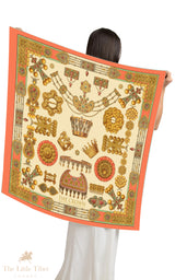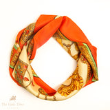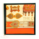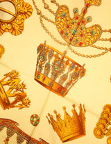 Step into a world of vintage allure and royal sophistication with "The Crown Jewel" silk scarf collection. Each scarf is elegantly adorned with intricate designs inspired by vintage jewellery. The scarves capture the essence of luxury, from delicate bracelets to shimmering brooches and cascading earrings to glittering rings and necklaces.