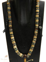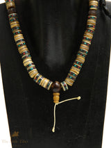 Key Features: Antique Yak Bone Beads, Weight-147g, 12mm Size(approx.). Naturally aged with visible patina and character; 108 Disc-Shaped Beads – Traditional count for mantra meditation; Ridge Inlay Design – Filled with red, blue, and brass detailing; Wearable & Functional – Suitable for prayer or daily spiritual wear; Handcrafted – Unique finish, each bead individually carved and set.