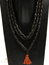 This bold black Tibetan skull mala features 108 finely carved yak bone beads, each shaped into a skull form. Symbolic of impermanence, spiritual transformation, and inner reflection, this mala is traditionally used in Tibetan meditation and prayer practices. The rich black colour gives it a dramatic, grounding presence, ideal for both ceremonial use and everyday wear. Crafted as a long mala, it can be comfortably worn as a necklace or used in mantra recitation.