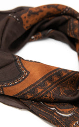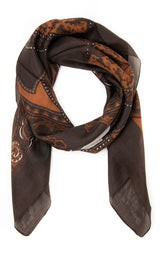 This Ethel Square Silk Scarf is distinctively patterned and earth-toned— making it a versatile piece to mix and match with different outfit hues.
