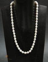 Exuding timeless elegance, this beautifully beaded necklace is adorned with natural oval-shaped freshwater pearls. Each pearl shimmers with its own natural iridescence, offering a graceful, refined look that complements any occasion.