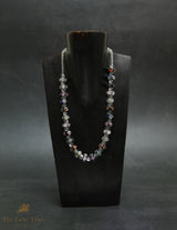 This handcrafted beaded Murano glass necklace is a vibrant celebration of colour and artistry. Featuring a captivating mix of multicoloured floral glass beads, each bead encases a sparkling floral motif, complemented by clear crystal spacers. The elegant design blends larger round beads with smaller accent beads, creating a layered look that is both traditional and modern.