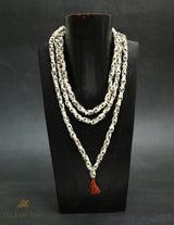This traditional white Tibetan skull mala features 108 hand-carved yak bone beads, each shaped into a skull, symbolising impermanence, spiritual growth, and the transitory nature of life. The natural white colour of the bone adds a classic and reverent aesthetic, making it ideal for meditation, prayer, or as a spiritual necklace mala. Its long design allows it to be worn around the neck or used in mantra recitation with ease.