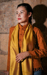 Silk is an emblem of softness and luxury. The colour of royal gold is fantastic, which makes the silk charming and inviting. You can get the Aina Gold & Navy Silk Scarf for yourself and a friend.