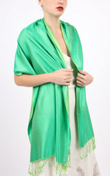 This silk scarf features two vibrant shades of green that will give a casual outfit a luxurious and chic twist.