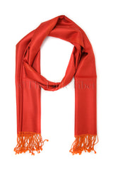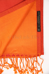 Silk, an epitome of tenderness and luxury, is represented here in this piece with two fabulous colours in orange and red. This silk scarf is beautiful, regal, and reflects light flawlessly. It can be worn as a scarf or used to compliment an outfit over your shoulders in the evening.