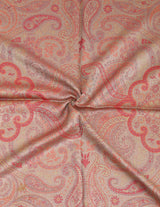 Experience the radiant charm of the Crimson Elegance Himalayan Silk Shawl, a luxurious handwoven masterpiece crafted from 100% pure silk. Featuring a striking crimson red base with shimmering gold and soft pastel accents, this shawl captures the essence of regal sophistication. The intricate paisley and floral motifs, inspired by traditional Tibetan craftsmanship, add an element of timeless beauty, making it a statement piece for any occasion.