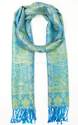 Intricately designed reversible depicting royalty with pure silk woven into a beautiful pashmina. This is sure to give you a feeling of comfort and radiance with its warm green detail. The colour of this silk pashmina is spirited and fluorescent making it great to stand out in. You could even be generous enough to gift someone with this lovely silk pashmina.