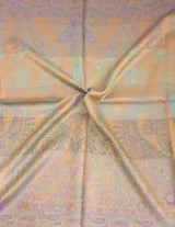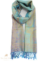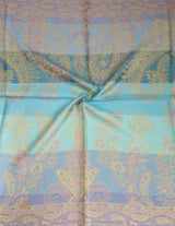 Indulge in the ethereal beauty of the Mystic Mirage Himalayan Silk Shawl, a luxurious handwoven masterpiece that blends traditional craftsmanship with modern elegance. Designed in soft aqua blue, pastel lavender, and gold hues, this silk wrap radiates sophistication and shimmers beautifully under light. The intricate Tibetan paisley and floral motifs make this a timeless statement piece, perfect for both formal and everyday wear.