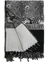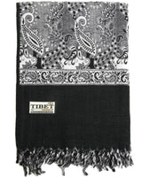 Black & White Tibet Shawl – Paisley Wool Blend Wrap