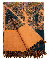 Forest Green & Mustard Tibet Shawl – Paisley Wool Blend Wrap