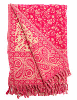 Raspberry Pink & Cream Tibet Shawl – Floral Paisley Wool Blend Wrap
