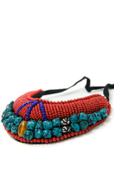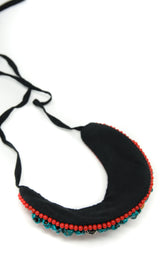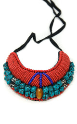 The Amber Beaded Tibetan Neckpiece is known as the “Kyi Bhub” in Tibetan culture, which means neck locket. It has been handmade to add an authentic touch. Amber stones take centre stage in this beaded necklace alongside eye-catching turquoise, coral, amber and lapis lazuli. There is a soft black fabric string to keep it held well and secure around the neck.