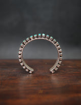 Material: Silver base with 27 Tibetan turquoise studs