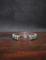 Bold, elegant, and rooted in Himalayan tradition — this Chunky Tibetan Turquoise Bangle is a statement piece handcrafted with 27 elongated turquoise studs set in a richly detailed silver base.