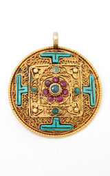 In the Tibetan language, Mandala is used in order to describe the universe. A pendant unlike others not only in its design but also in its unique and intricate detail as the turquoise Mandala is geometrical in its shape in addition to it being structured with both entry and exits doors. Be the epitome of unity and harmony as this is what this piece represents.