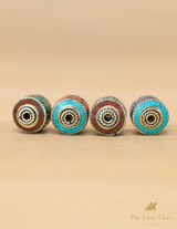 Handmade Turquoise Inlaid Barrel Brass Beads for Jewellery Making - E5