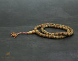 Tibetan Yak Bone Mala | 108 Disc Beads with Brass, Red & Blue Inlay