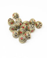 Triangular Brass Red Coral Inlay Tibetan Beads for Jewellery Supply - Z108