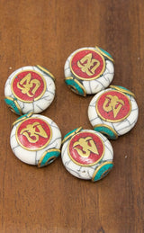 Brass Tibetan Coral Resin OM Beads for Customised Neckpiece - A7