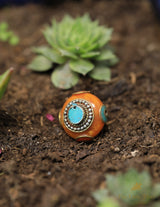 Materials: Turquoise composite and Red Coral resin, brass, refined earth